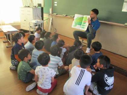 読書月間ということもあり、ALTの先生に英語の絵本を読んでいただきました。