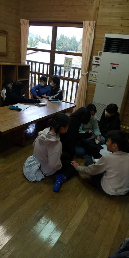 お部屋に入りました。はじめは、はしゃいでややばたばたしてましたが、グループミーティングをして、2日間の約束を決めました。楽しい気持ちとみんなで過ごす思いやりと両方できるといいですね。