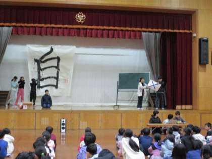 広報委員会は、正しい放送の聞き方について、劇を交えて楽しく全校のみんなに知らせてくれました。また、ふれあいタウン実行委員会からは、2月2日(金)に開催される「ふれあいタウン」のテーマを発表してくれました。それぞれ工夫された発表で、興味をもって聞くことができました。