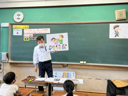 4年生では、イラストを使って日常の中にあるトラブルなどを例に挙げながら、分かりやすく説明をしてくださっていました。