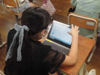 4年生以上でCBT学力調査を行いました。初めて受ける、本格的なタブレット型のデジタルテスト。普段のペーパーテストとは違ったテストですが、学校でミライシードやロイロノートスクールをよく使っているため、慣れた様子でテストを受けていました。