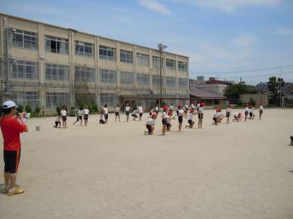 6月9日の運動会に向けて,組体操の練習を始めています。今年は5年生と6年生が一緒に力を合わせて取り組みます。今日は初めての運動場での練習でした。