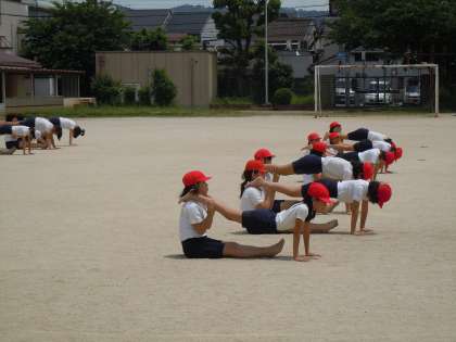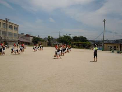 6月9日の運動会に向けて,組体操の練習を始めています。今年は5年生と6年生が一緒に力を合わせて取り組みます。今日は初めての運動場での練習でした。