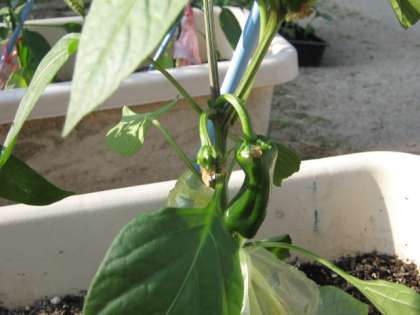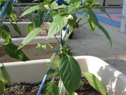 子どもたちが毎日一生懸命水をあげていたピーマンについに実ができました!