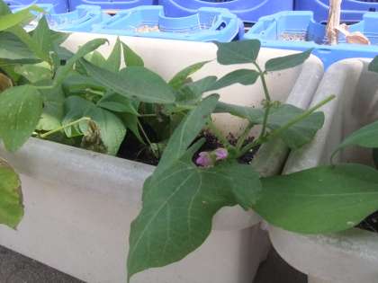 理科の授業で育てていたインゲン豆が大きくなってきたので、牛乳パックからプランターへ植えかえました。