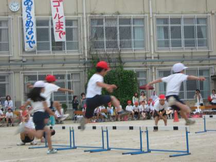 4年生の初めてのハードル走,5年生のハードル走でした。