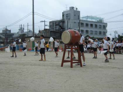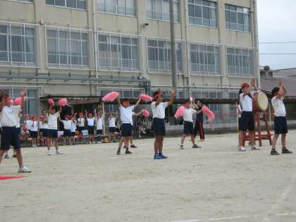 応援団長の迫力ある声に負けない声で紅白それぞれの人が応援合戦を披露しました。