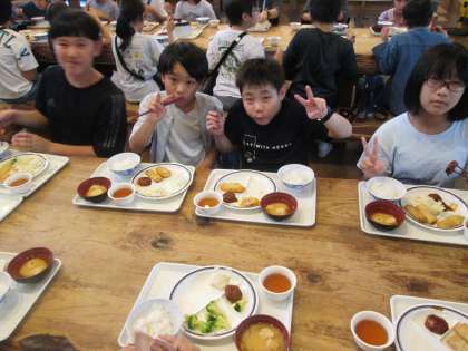 夕食の後は、入浴タイム。汗をたくさんかいたので、みんなすっきりさっぱり気持ちよかった〜と言っていました。大きなお風呂も楽しみました。