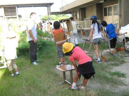 9月27日に始動した“机はこび隊”ですが,6年生をはじめとする多くの学年の人がボランティアに参加してくれたおかげで,何と!1日で大量の机・椅子を運ぶことができました。みんなのパワーと熱い気持ちに感謝・感謝です!