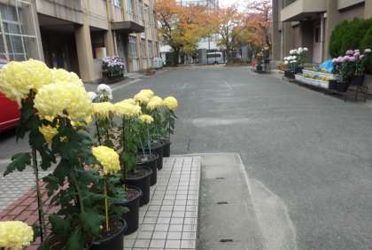 学校の大きな菊も今や満開を迎えております。