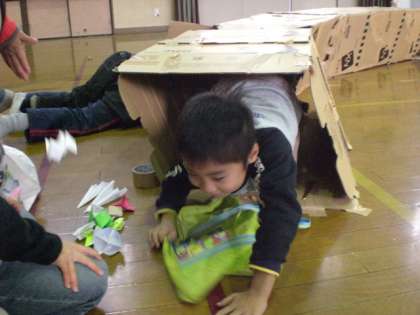 2年生がフェスティバルに招待してくれました。招待状をもらって,わくわくして体育館へ。レストラン,ペットボトルボーリング,段ボール迷路など楽しいコーナーがいっぱいありました。手作りの景品をもらってにこにこ,最後にまつぼっくりのツリーをもらいました。「楽しかった!」と喜んで帰りました。
