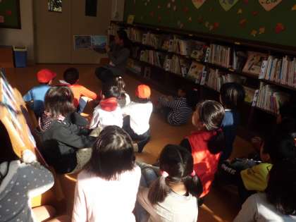 学校図書支援員の先生や学校支援ボランティアの先生,そして図書委員の人達に, 休み時間に「読み聞かせ」をしてもらっています。様々な本に出会ってお話の世界に浸ることができています。