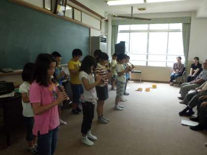 6月20日(金)に総合的な学習の時間で「すこやか学級」の皆さんと交流会をしました。今回で2回目ですが、「もっとわたしたちのことを知ってもらおう」と、子どもたちで企画し、劇やゲームをしたり、歌やリコーダーを演奏したりしました。「すこやか学級」のみなさんが笑顔で楽しんでいる様子を見て、子どもたちは「今度は、もっと何かいっしょにしたい!!」とわくわくした表情で、感想を言っていました。