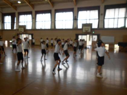 運動会の練習頑張っています。3・4年生は、今年度の運動会でソーラン節の九条弘道バージョンを練習しています。腰を落として、しっかりしこをふんで頑張っています!!