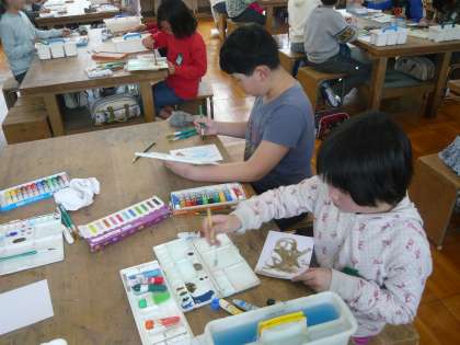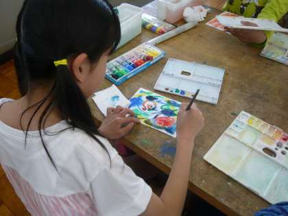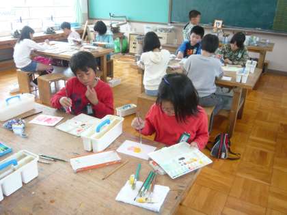 図画工作科では,「心のもよう」の学習をしました。自分の心のもようを,絵の具を使って表現しました。「十人十色」とはよく言ったもので,それぞれが思い思いの表現を楽しんでいました。