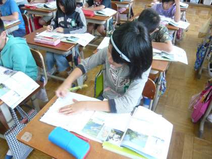 社会科では,教科書や資料集にある表やグラフからいろいろな情報を読み取って学習を進めています。今回は低い土地に暮らす人たちの暮らし方の工夫を,様々な資料から読みとっています。