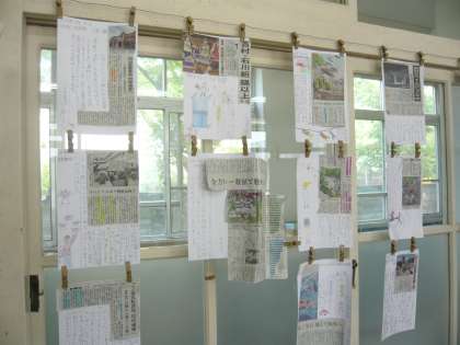国語科では,自分のお気に入りの新聞記事を切り取り,それにコメントを書き込む作品を作りました。5年生の子どもたちの力作が,教室に掲示されています。
