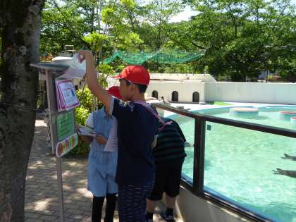 動物園に入り,グループごとにクイズラリーを行いました。1年生と5年生とが協力してクイズを解きながら,動物園を楽しみました。