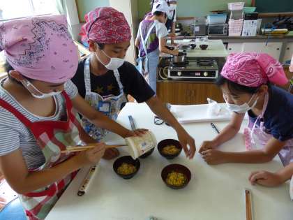 自分たちで作ったラーメンをおいしくいただき,最後にグループごとに工夫したことを発表し合いました。これからも環境にやさしい行動が意識できるようにしていきたいと思います。