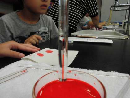 科学センター学習へ行きました。6年生は実験室での学習でした。「わくわく水科学」という学習でした。水の吸い付く力や毛細管現象,表面張力の実験をしました。普段あまり気にすることのない水ですが,様々な現象を目の当たりにし,驚きの声がたくさんあがっていました。
