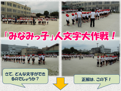 11校のトップを切って,本校では今日,人文字を作りました。うまくできているかどうかは,下の写真で確かめてみてください!