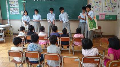 先週の金曜日に中学生による読み聞かせがありました。小中一貫教育の取組の一つで行っているものです。事前に何度も練習してきてくれたようで,2年生が聞きやすいように,そして見やすいようにいろいろと考えて読み聞かせしてくれました。2年生のみんなは大喜びでした。身近なおにいちゃん,おねえちゃんが前で読み聞かせをしてくれるのはとっても楽しかったようです。「また来てほしい!!」とたくさんの子が感想を言ってくれていました。