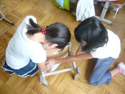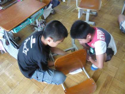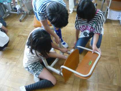 高学年になり,体も成長して大きくなってきました。それに合わせて,机やいすの高さを変えました。友だちと協力して活動しました。