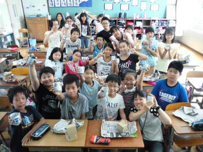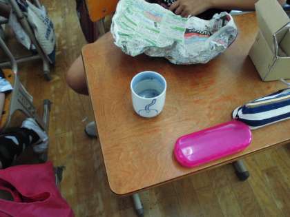 修学旅行でしなの陶磁器センターへ行き,絵付け体験をしてきました。その作品が学校に届きました!思ったより早い到着にみんな大喜び。どきどきした表情で箱を受け取り,みんなで「せーの」で開けました。絵付けをしていた時とは茶碗や湯のみの手触りや見た目の雰囲気も全く違いました。自分の茶碗や湯のみをとても大事そうにしっかりと持ち,じっくりとながめていました。みんなで記念撮影もしました!片づける時もとても丁寧にそーっと新聞に包み,箱にしまっていました。思い出の作品になりました。