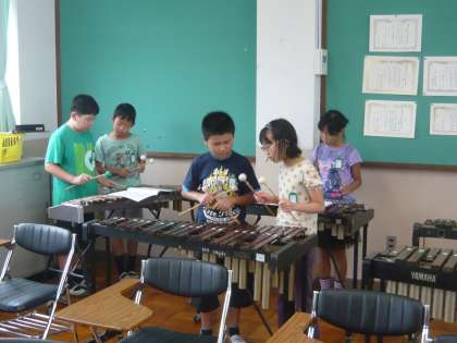 音楽の時間に,自分で楽器を選んで合奏の練習を進めています。みんなで心を合わせて,きれいなハーモニーを奏でられるようにがんばっています。