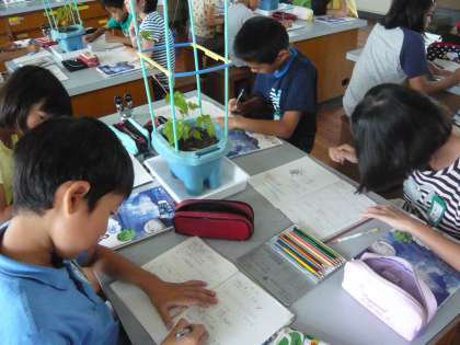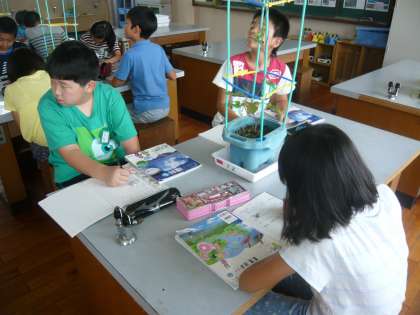 理科では,植物の実や種子のでき方についての学習をまとめました。先週から行ってきた実験では,受粉させためしべの方には小さな実ができ始めていることが分かりました。夏休みに向けて,様々な植物の実や種子のでき方について興味を持ってほしいと思います。