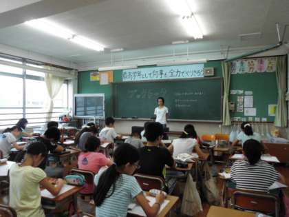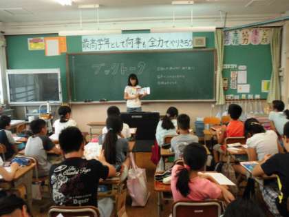国語科で「本と私」の学習をしました。その中で自分の読書生活についてふり返り,おすすめの本を1冊選びました。選んだ本はみんなに紹介するためにピカイチ☆ブックカードに書きました。今日はその本をみんなに勧めるために,ミニブックトークをしました。1人1分程度で自分の選んだ本について話しました。本を持ちながら話す子,本のあるページを見せながら話す子,中には「是非,読んでください!」とジェスチャーをつけて話す子もいました。クラスの友達が好きな本にみんな興味を示し,真剣に聞いていました。
