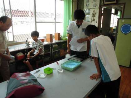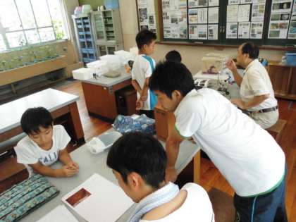 先週,1回目の自由研究相談会がありました。6人の5・6年生が参加してくれました。顕微鏡を使って実験を進める子,実験の進め方やまとめ方を先生に相談する子,研究を進める上で必要な器具を借りていく子と様々でした。今回参加しなかった人たちも家でこつこつ頑張っていることと思います。次回の自由研究相談会は8月6日(木)の10時からです。登校日と同じ日となっています。たくさん参加しましょう!