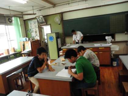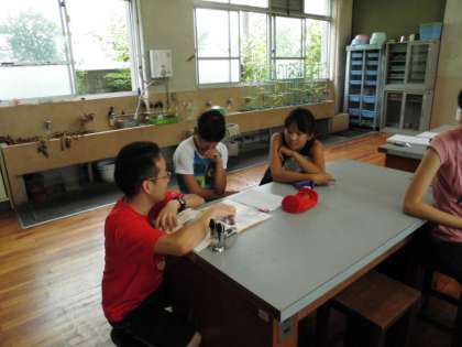 登校日のあとは2回目の自由研究相談会でした。前回相談会で考えた実験の結果を報告し,まとめ方を相談する子,観察がうまくいかなかったのでもう一度方法を確かめる子,これから自由研究に取りかかるため,実験の仕方を相談する子とさまざまでした。夏休みも後半戦です。頑張って研究を進めてほしいと思います。