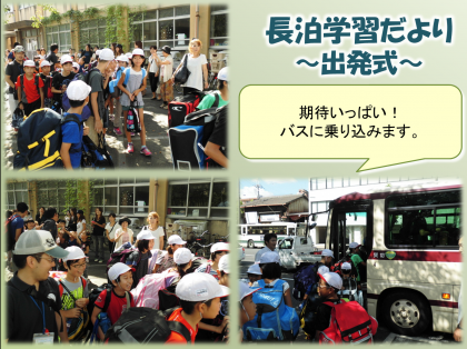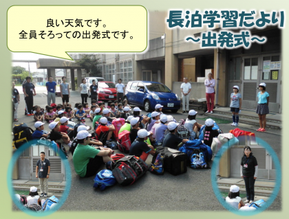 大変なことの方が多い5日間になると思いますが,責任をもって取り組み,友だちと協力しながらチャレンジする経験を通して得るものはきっととても大きいはず!出発式での子どもたちは,そんな期待感に満ちた引き締まった表情でした。
