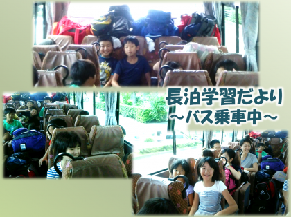 バスの中ではおしゃべりをしたり,変わりゆく景色を眺めたりしてとても元気にしています。街中を抜け,山に入り,1時間半ほどの道中です。