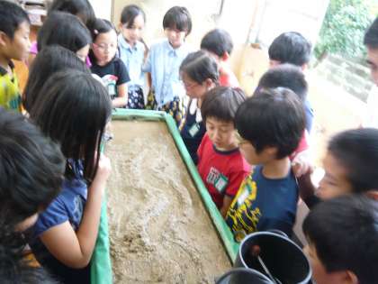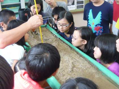 理科では,流れる水のはたらきの学習に入りました。川の流れを観察し,その特徴を見つけ出していました。