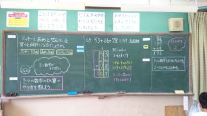 いろんな考え方が出てきました。写真のような筆算を考えた子どもがいました。