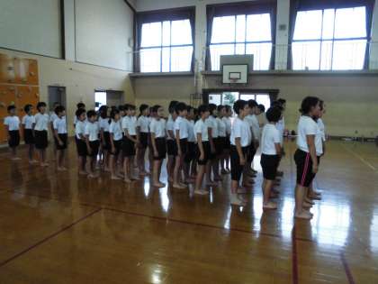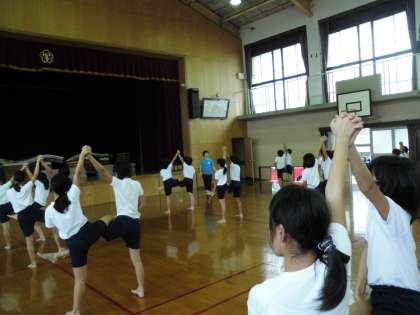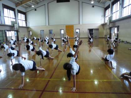 明日から連休に入ります。今週中に最初から最後まで通すことが目標でした。天気が悪い日も多く,体育館での練習の日もありました。それでも昨日,体育館で退場まで通すことができました!技や流れは完成です。連休明けにはさらにきれいにみせること,曲とずれないようにすること等の練習をして本番に備えます。