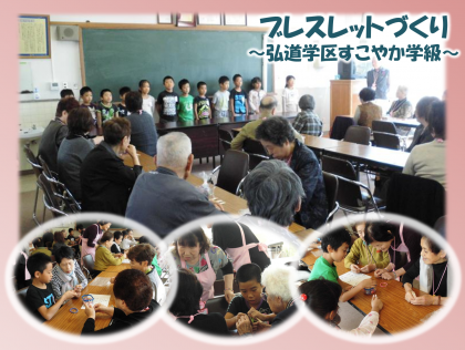 16日(金),弘道学区のすこやか学級に参加させていただき,お年寄りの方々との交流を行いました。ブレスレットづくりを体験させていただき,教えていただきながら会話も弾みました。とても楽しい時間を過ごすことができました。