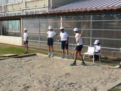 体育科では,走り幅跳びの学習を行っています。助走の長さを工夫し,自分に合った距離を見つけようとしています。また,助走のスピードだけではなく,踏み切りの強さや着地の方法などに気を付けながら,少しでも遠くへ跳べるように学習を進めています。