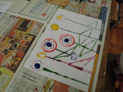 普段何気なく使っているものに絵の具を塗って画用紙にペタリ。