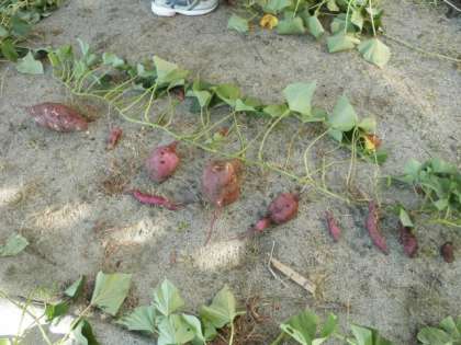 ほってみると大きなサツマイモから小さなサツマイモまで