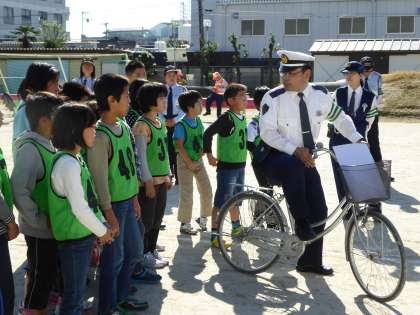 11月5日に自転車教室を行いました。5年生は2回目のチャレンジになりますが,初めに警察官の方に気を付けるポイントやコースなどをていねいに教えていただいてから,道路に見立てたコースを走行したり,技術コースを走行したりしました。教室に帰ってからは筆記テストをしました。