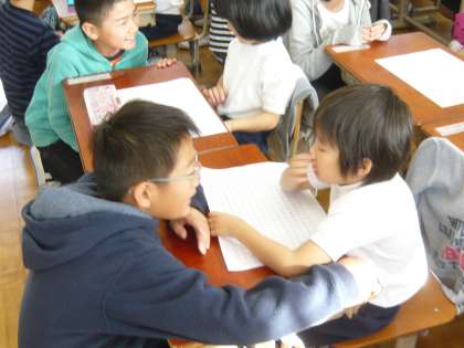 今週の水曜日に1年生の学習発表会がありました。本当に見ごたえがあり,素晴らしい発表でした。ペア学年として,5年生ができることを考え,「すぐにメッセージを伝えたい!」という意見が出たので,すぐに1年生の教室に行き,ペア掃除をしているグループの1年生に向けて,感想をたくさん話しました。
