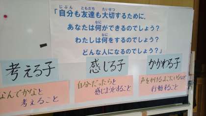 そして,「とべないホタル」の読み聞かせを聞き,「人を大切にする」「友達と仲よくする」とはどういうことかを考えていきました。