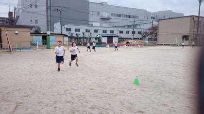 どういうことと突っ込まれそうですが,要は自分のペースで最後まで走りきろうという学習です。低学年ははじめにとばしすぎて,後半息切れするということが多いのです。だから「ゆっくりかけあし」という名前になっています。