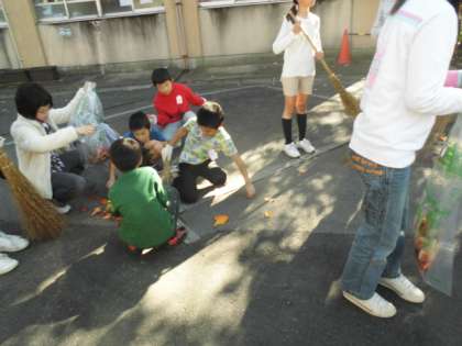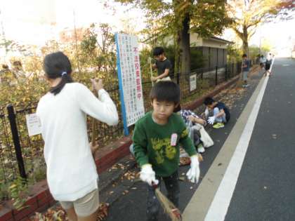 今日は2回目のクリーンキャンペーンでした。今日は前回とは違うグループの子たちが落ち葉掃きに出かけました。校門から春日公園の前の落ち葉を掃除しました。とりきれないほどの落ち葉でしたが,一生懸命そうじしました。袋にたくさんの落ち葉が集まりました。