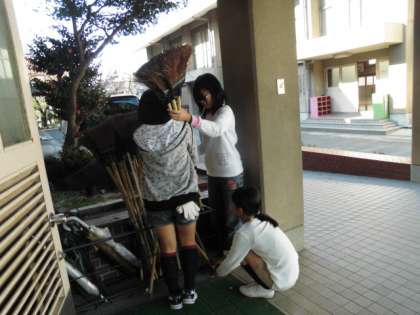 帰ってきてからはみんなが使い終わったほうきを進んで片づける6年生の姿がありました。