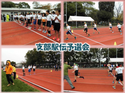 今日は支部大文字駅伝大会がありました。春からこの日に向けて練習をしてきました。天気はあまりよくなくて,途中から雨が降る中での大会になりましたが,みんな全力で走り切りました。個人走に出場した選手も駅伝に出た選手も普段よりも良いタイムが出た子が多くいました。走り終わったあとのやりきった顔がとても素敵でした。選手でない子もたくさん応援に来てくれました。走り終わった後,「応援の声がよく聞こえて嬉しかった。」と言っていました。