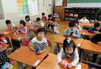 毎週,水曜日の朝は「フッ化物洗口」をする日です。今日は,1年生になって3回目の「フッ化物洗口」でした。キラキラ星の音楽に合わせて,口の中でお薬を右・左・前と移動させてぶくぶくします。大型連休を挟んだので,久しぶりの「フッ化物洗口」となりましたが,全員しっかりできました。